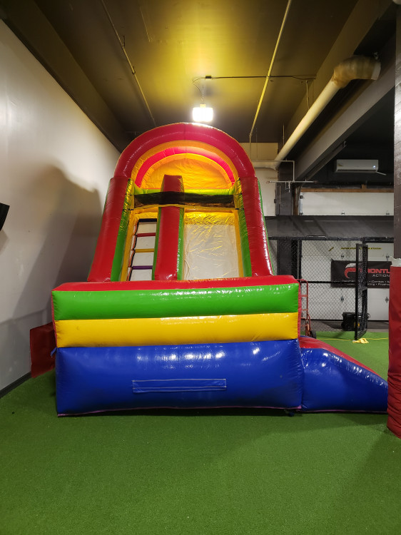 - OCCUPANCY: A maximum of 5-6 kids of equal size at one time for bounce houses, and 1 person at a time for slides is what most inflatable manufacturers recommend.