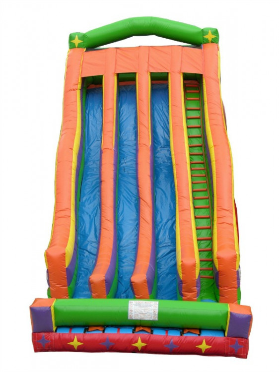 Climb three stories of steps to the top and come down an (almost) vertical drop to the bottom. Wheeeee… comes to my mind! Great for birthdays, community events..